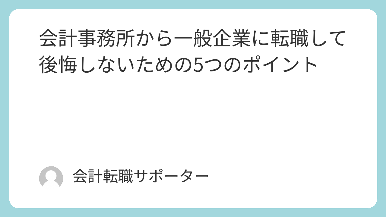 会計事務所から一般企業に転職して後悔しないためのポイントを、